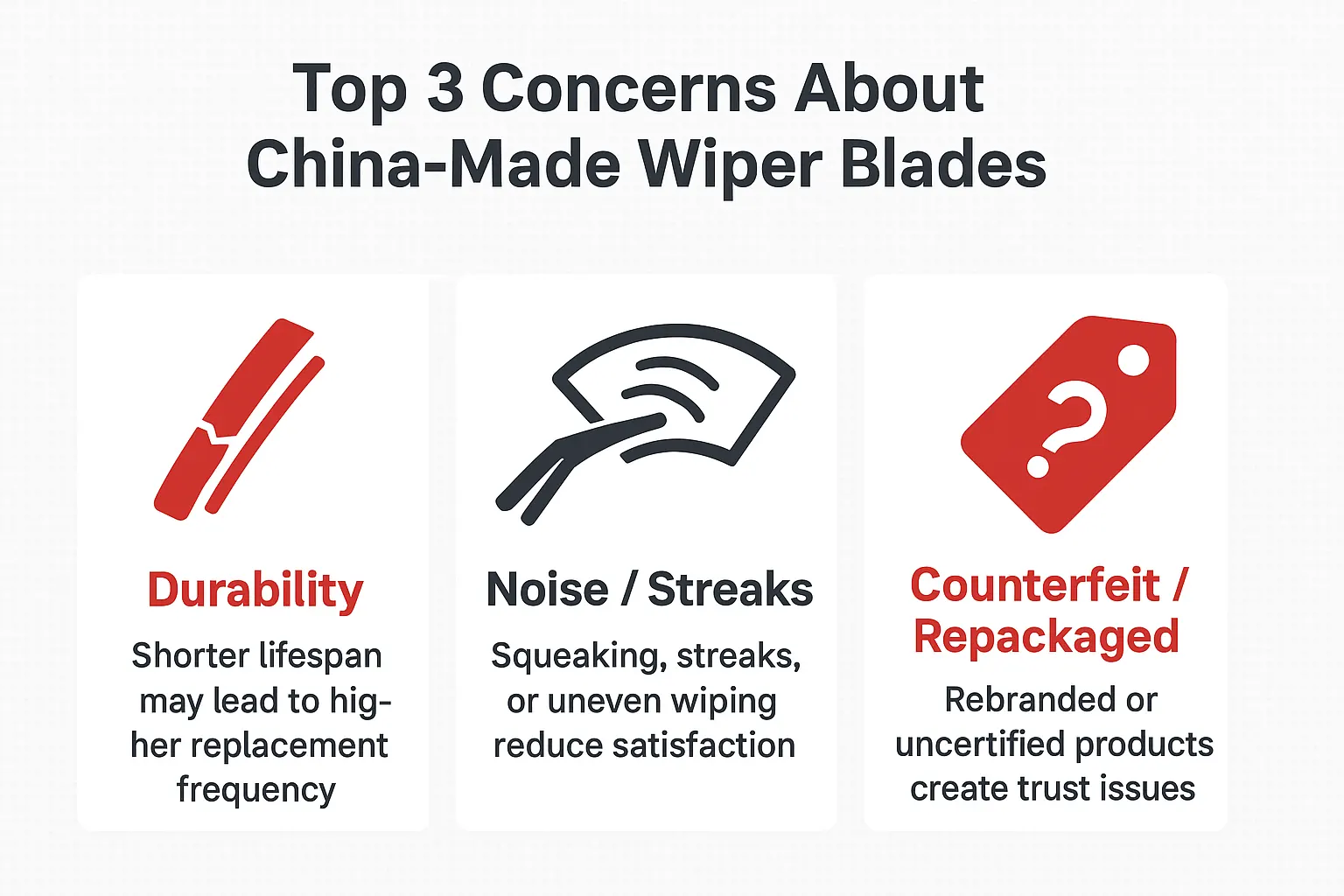 إذا كنت مالكًا أو موزعًا لمحل إصلاح السيارات، فقد لا تزال مترددًا في شراء شفرات المساحات من الصين. ربما سمعت قصصًا عن وجود خطوط أو صرير أو أجزاء تتآكل بسرعة كبيرة. أو ربما ذكر أحدهم مجموعة غير مناسبة بشكل صحيح. ورغم أن هذه التجارب حقيقية في بعض الحالات، إلا أنها غالبًا ما تأتي من موردين عفا عليهم الزمن أو من علامات تجارية منخفضة التكلفة، وليس من شركات مصنعة حديثة ومعتمدة.