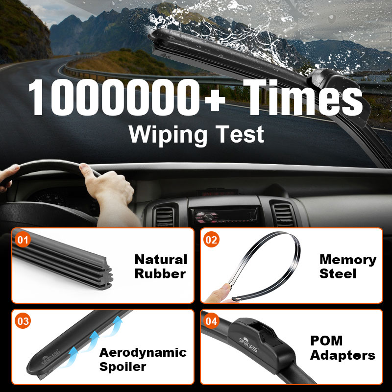 داخل كل شفرة بدون إطار هو نظام الصلب الربيعي متعدد النقاط. ينتشر الضغط بالتساوي على طول الشريط المطاطي ، ويساعد في الحفاظ على ملامسة الزجاج الأمامي المنحني وتقليل البقع العمياء أو التجويف - بحيث يحصل عملاؤك على مسح نظيف في كل مرة.